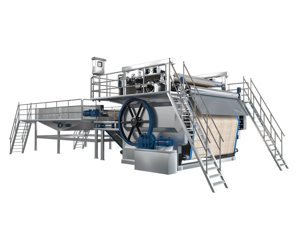 本產(chǎn)品為公司在多年實(shí)踐的基礎(chǔ)上,自主研發(fā)的產(chǎn)品。主要用于對(duì)各類(lèi)漿料進(jìn)行洗滌、濃縮、固液分離及濾液提取。采用多壓區(qū),壓力逐級(jí)加大,出漿濃度高;通過(guò)調(diào)整網(wǎng)速、線壓力,提高脫水量和出漿濃度;脫出的濾液濃度低,纖維損失少。